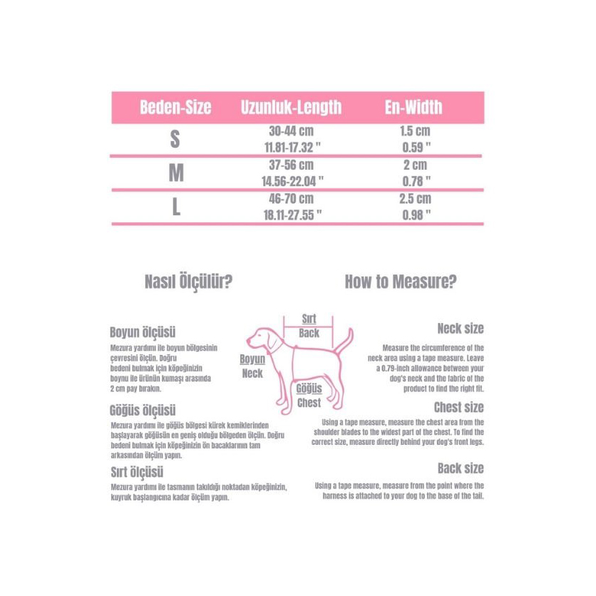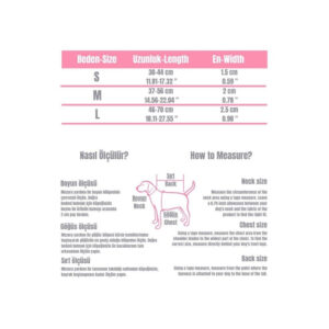 - Ölçüler: Large beden; 46-70 cm arası göğüs genişliği ve 2.5 cm kemer eni ile orta ve büyük ırklar için idealdir.