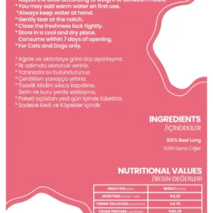 - İçerik: %100 Dana Ciğeri (Beef Lung)